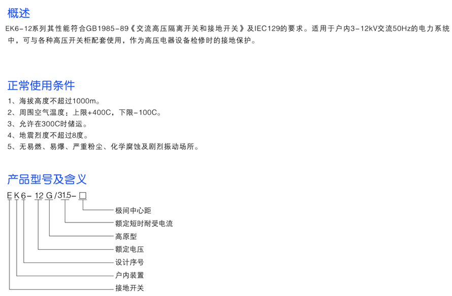 EK6-12/31.5戶內(nèi)高壓接地開關(guān)