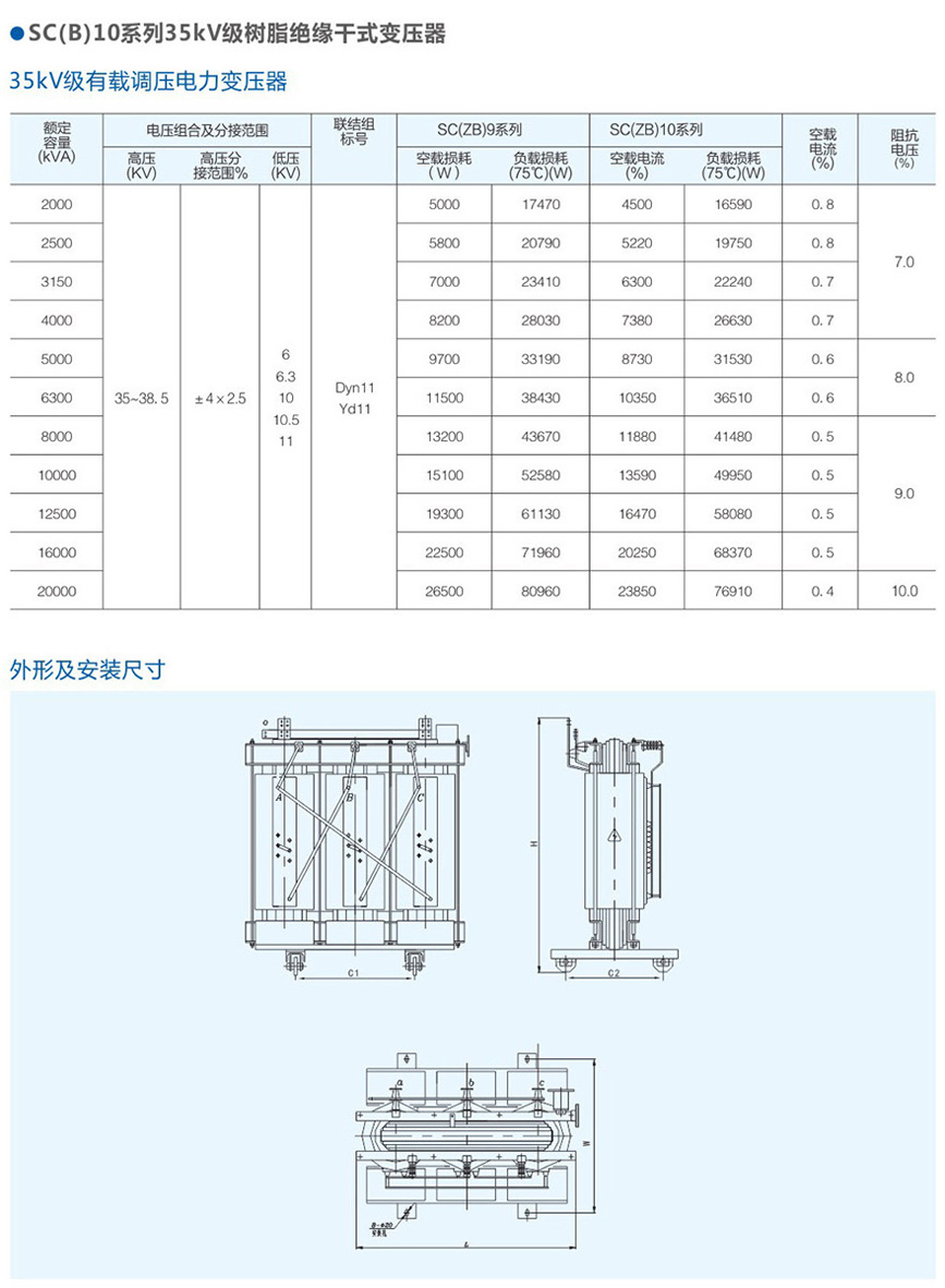 SC(B)10系列35kV級樹脂絕緣干式變壓器